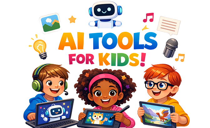 A fun and exciting 5-day course for kids to learn how to create videos, music, games, and more using AI tools!